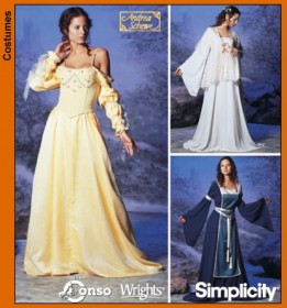 Iām not sure which pattern I used. If I had to venture a guess, I might say itās a modified M4861 (the McCallās āRenaissanceā bodice/corset pattern), but Iām not sure that it was actually out back then. I might have (heavily) modified some other pattern of unknown origin, a strong possibility being the out of print Simplicity 5843 that I made (and finished!) the year before (the instructions for which I just found in a bag of ancient scraps), although that would be heavily modified, and I have no idea why I would add the side lacing to it.