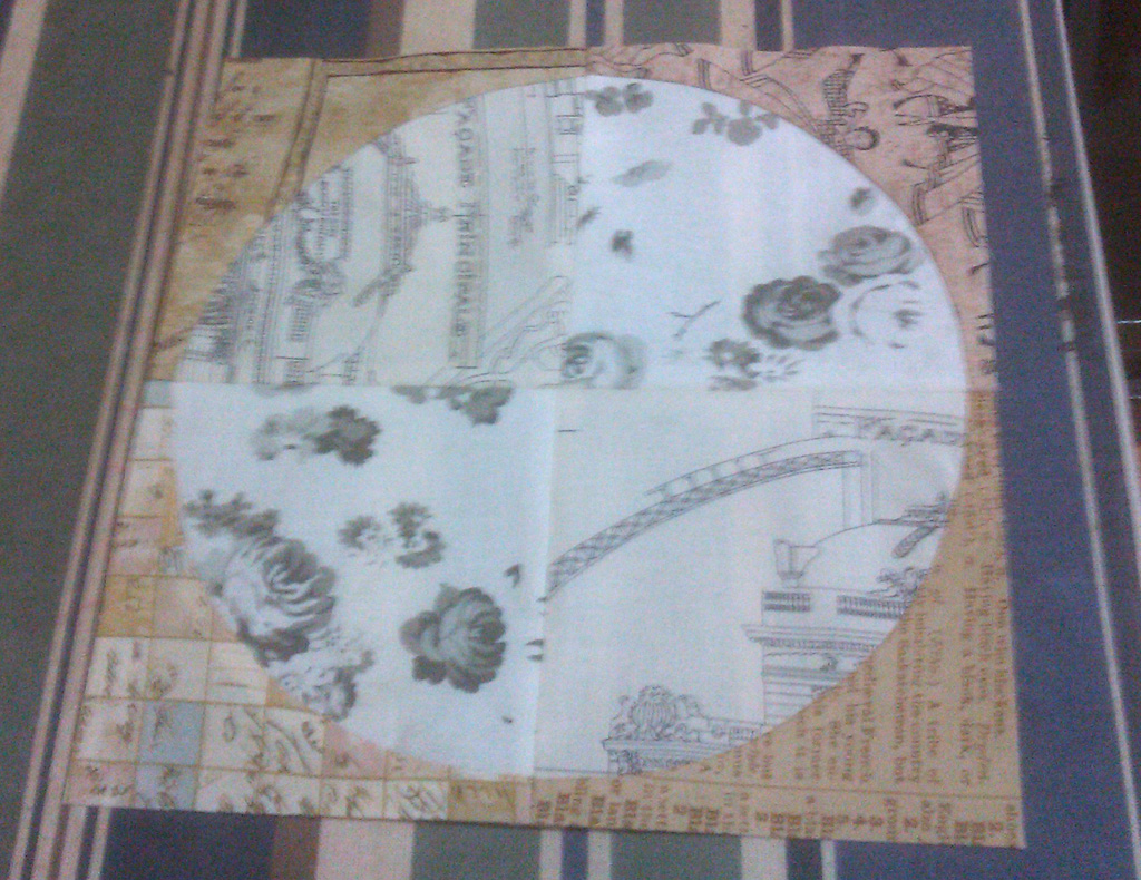And here is a scrap fabric rendition of another block. It took me ages to get these triangle blocks the right size—I don’t have fabric to waste, so I needed to get the templates right without having to cut down too much: